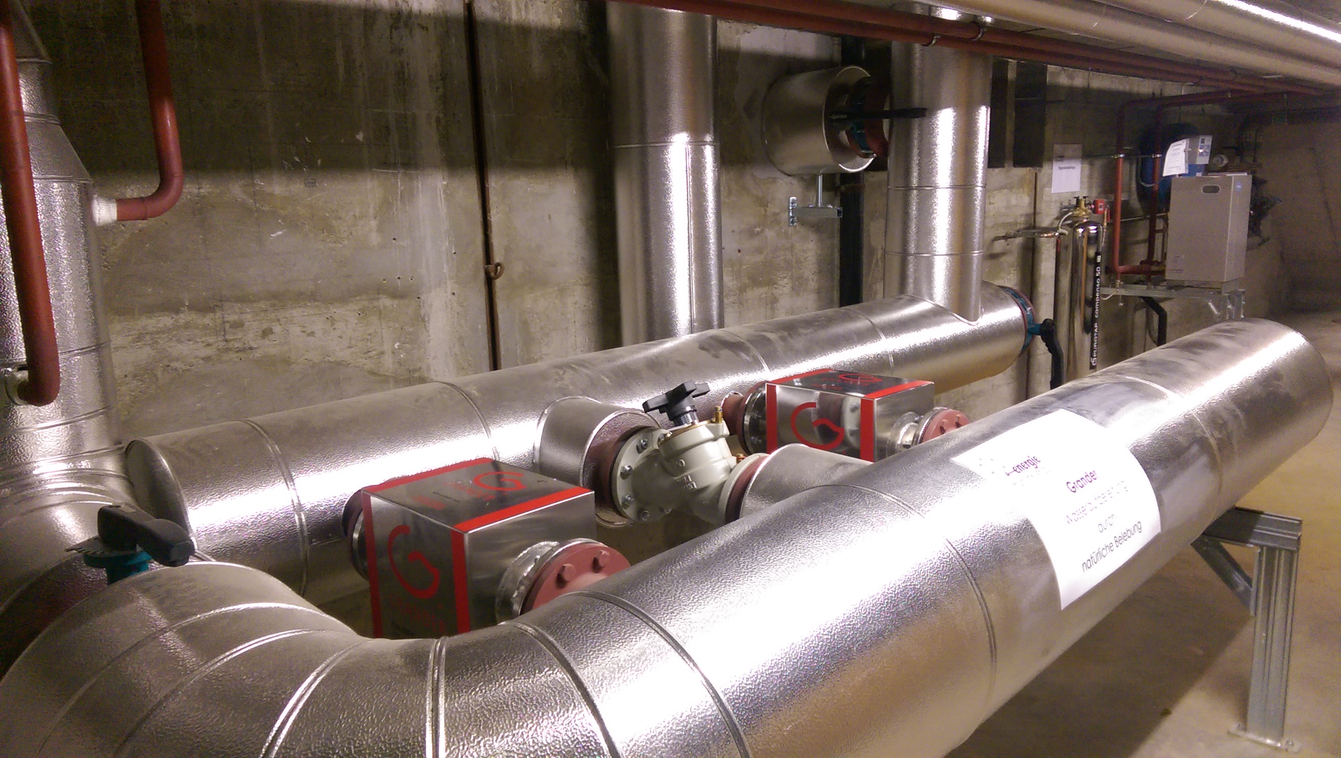 Dadurch wurde bereits bei der Realisierung des neu erstellten und im September 2014 in Betrieb genommenen Wärmeverbund-Projekts die GRANDER-Kreislaufbelebung installiert. Dieses Projekt ist bis zum Endausbau mehrfach grösser als das Projekt „Murgtal“. Integriert ist neben Ein- und Mehrfamilienwohnbauten auch das Industrieunternehmen Diversey AG mit den Gewerbebauten auf dem Areal und einem Restaurant. Bereits bei der Inbetriebnahme mit demineralisiertem Wasser zeigte sich eine starke und stinkende Verschlammung innerhalb von ca. 14 Tagen. Der Grund war, dass das Industrieheizungsnetz ohne Spülung und Wasserwechsel einfach dazu geschaltet wurde und sich die Verschmutzung im Leitungssystem durch die hohen Lösungseigenschaften der GRANDER-Wasserbelebung gelöst hat!